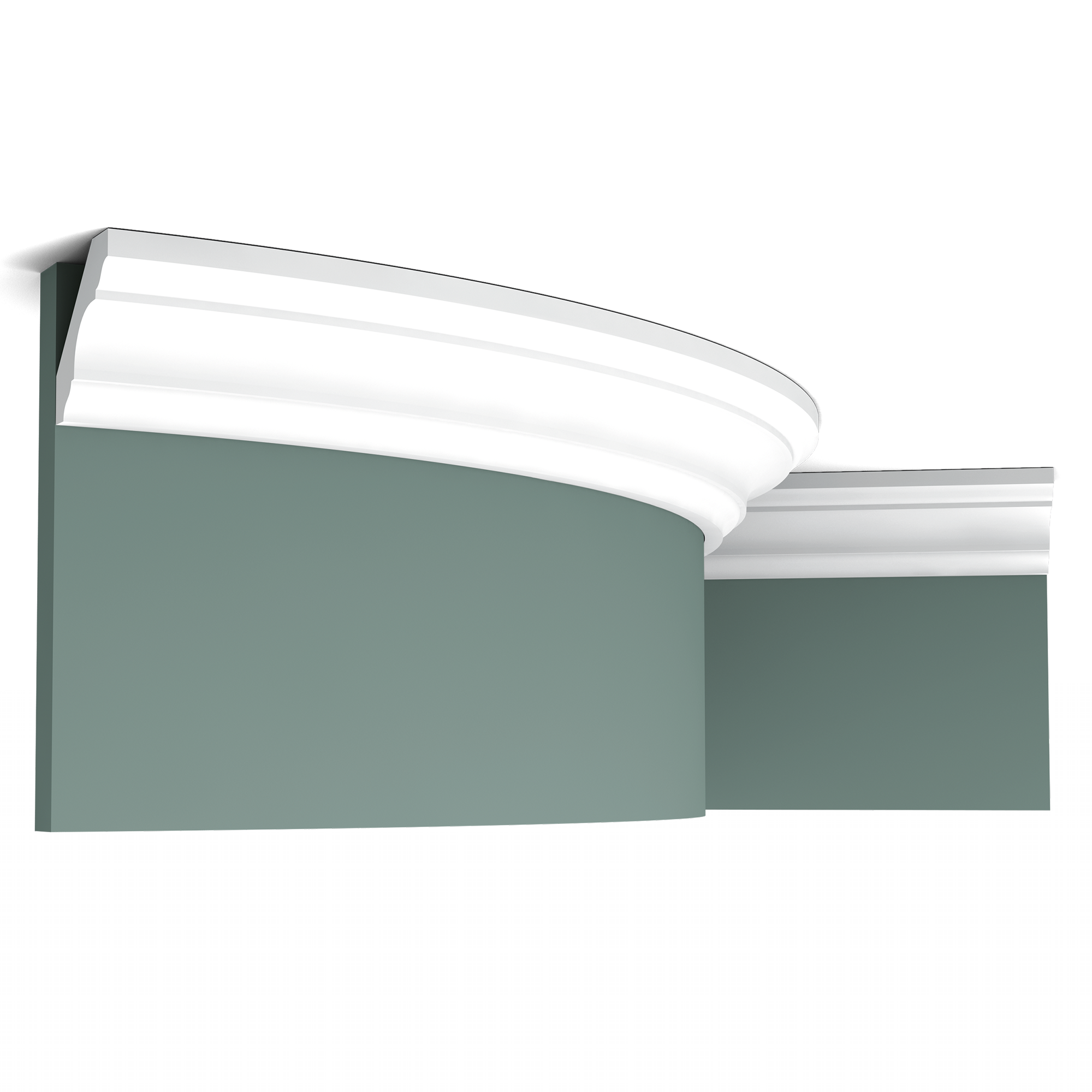 Listwa przysufitowa Orac C215F to elastyczna wersja uniwersalnego gzymsu C215, przeznaczona do montażu na obłych ścianach, zaokrąglonych wnękach, kolumnach i innych zakrzywionych powierzchniach.